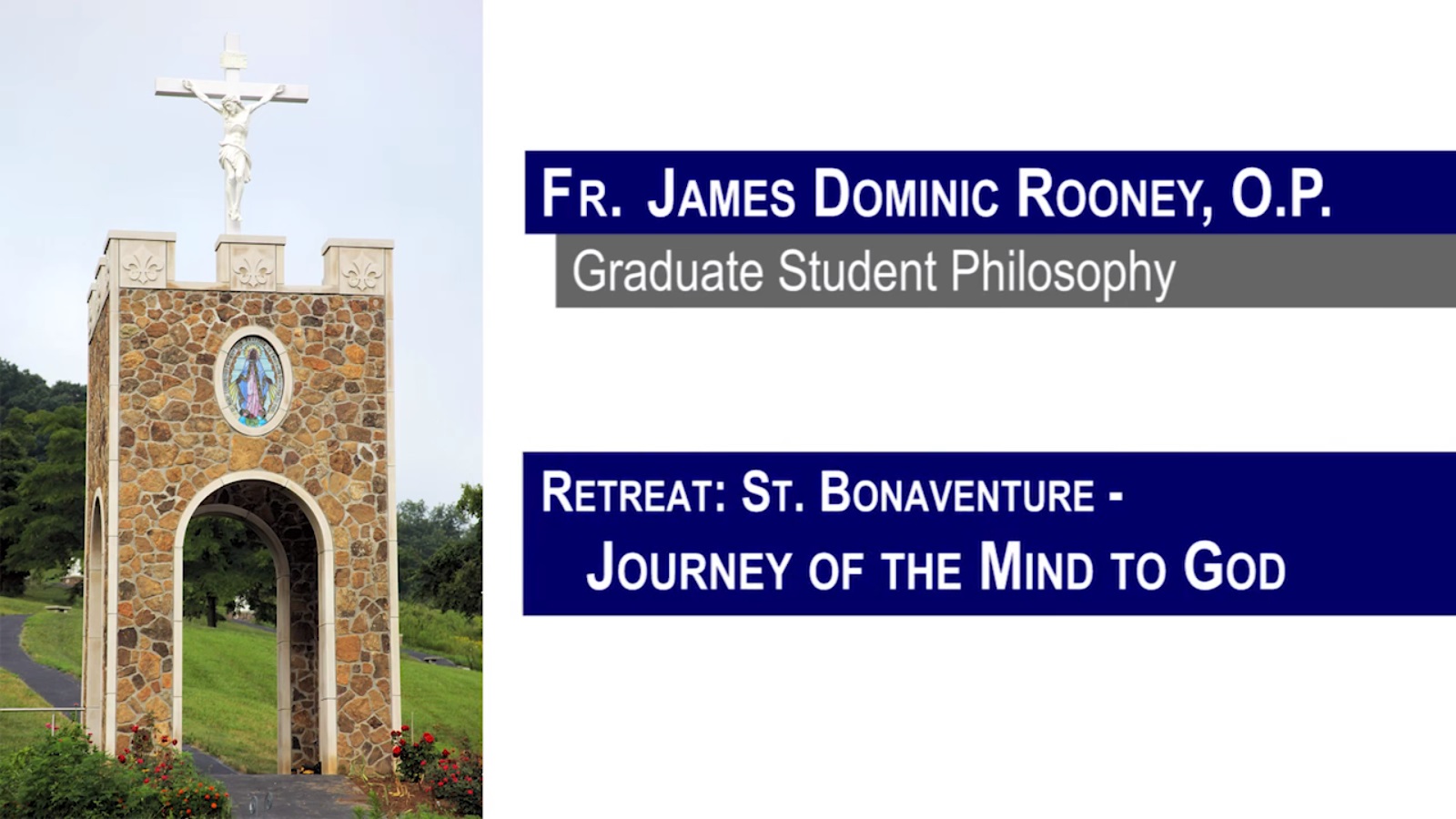 Retreat on St. Bonaventure's "The Journey of the Mind to God" which relates St. Francis' ascent up Mt. Alverna where he encountered the Crucified Christ to our own journey to God.