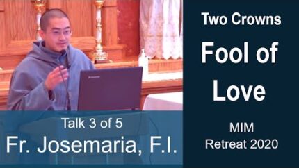 Ave Maria! Fr. Josemaria gives the third talk of five at the 2020 MIM Annual Retreat called "Two Crowns, One Life". In this talk Fr. Josemaria discusses how taking the Immaculate "into our…