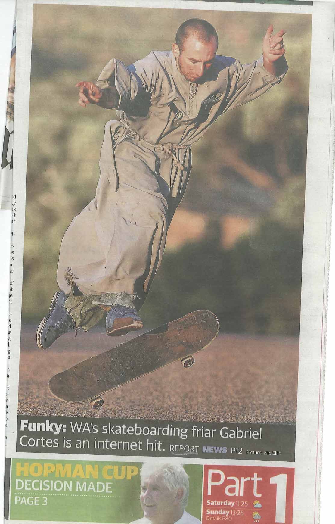 Fra Gabriel makes the news again with his Skateboarding for God